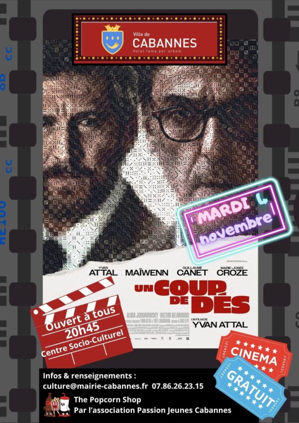 Film » Un coup de dés » avec Guillaume Canet et Yvan Attal. Gratuit et ouvert à tous. Buvette et petite restauration par l’association Passion Jeunes Cabannes.
