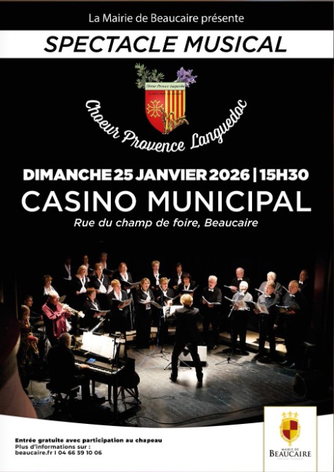 Chœur de Provence Languedoc, association beaucairoise regroupant des chanteurs de Beaucaire et des villages alentours, a le plaisir d’accueillir cette année la chorale d’Ollioules. Près de cinquante choristes vous proposeront un programme éclectique. Plus qu’un simple plaisir de chanter, le chant choral est l’occasion pour les participants de se retrouver sur scène et d’offrir aux spectateurs un concert varié mêlant musique classique, chants sacrés et musiques du monde. En fin de concert, tous les choristes se réuniront pour interpréter des chants communs. Venez nombreux applaudir ce spectacle inédit, différent des saisons précédentes ! Participation libre.