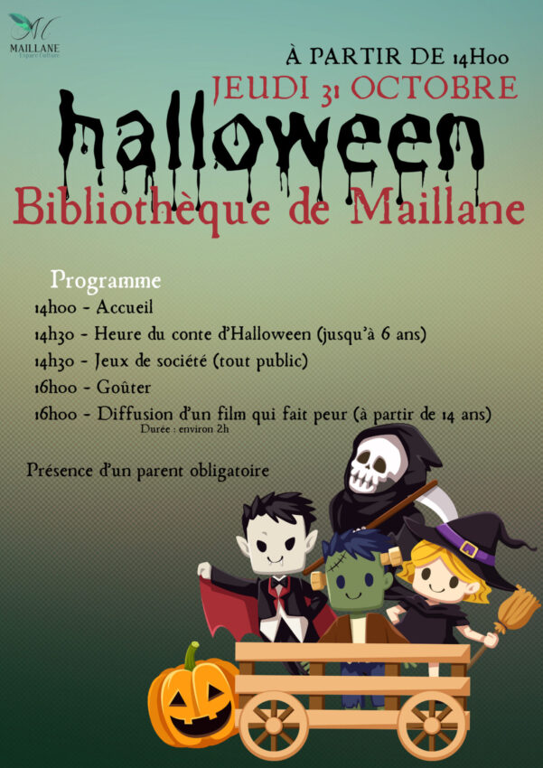 14h30 : Heure du conte d’Halloween jusqu’à 6 ans.
