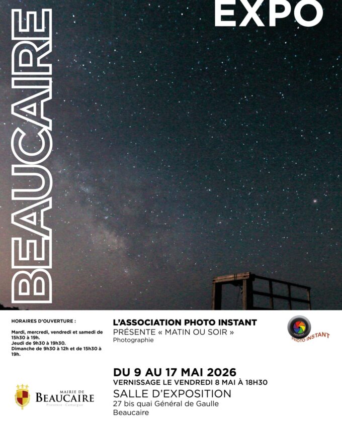 Exposition visible : Mardi, mercredi, vendredi, samedi de 15h30 à 19h | Jeudi de 9h30 à 19h30 | Dimanche de 9h30 à 12h et de 15h30 à 19h. Vernissage de l’association « Photo Instant », le vendredi 8 mai à 18h30. Entrée libre.