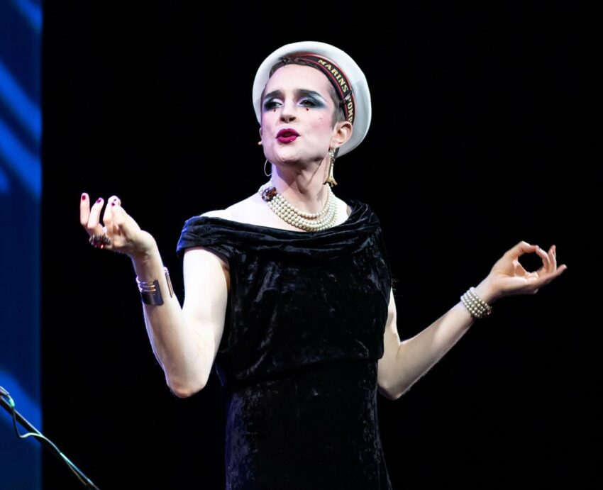 De Vaslav, on pourrait dire bien des choses… Que c’est un tour de chant pour une créature de cabaret sortie de son environnement naturel. Un concert à la shruti-box (instrument indien) qui voyage dans les répertoires et les époques. Un spectacle d’une infinie tendresse sur le genre et sur les artifices dont nous usons pour, paradoxalement, nous dévoiler. On traverse des morceaux de Monteverdi à Gainsbourg, de Caetano Veloso à Nirvana, de Bob Marley à Brigitte Fontaine, entre ragga, rock, classique et jazz. Vaslav, c’est surtout un moment de partage entre fantaisie et émotion. Car, derrière Vaslav se niche le performeur Olivier Normand : habitué du cabaret de Madame Arthur, danseur, comédien, chanteur, créature, il incarne un androgyne poétique vêtu d’une robe noire de velours, entre Barbara, Greta Garbo et David Bowie. Pailletée et littéraire, telle une magicienne délicate, une sorcière élégante, iel nous hante… longtemps encore après l’avoir découverte sur scène. Un bijou d’intelligence et d’humour. Tarifs : 3 à 10€